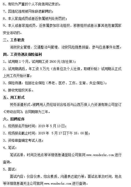 根據(jù)工作需要,經(jīng)古交市政府批準(zhǔn),現(xiàn)面向古交市公開招聘輔助工作人員30名。招聘工作由山西萬保人力...
