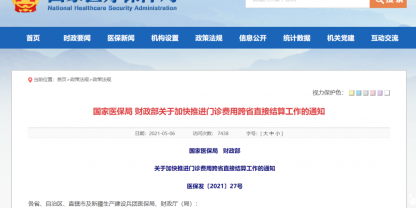 為了解決百姓門診費用 跨省直接結算問題 國家醫(yī)保局、財政部下發(fā) 《關于加快推進門診費用 跨省直接結算工作的通知》