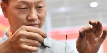 6月18日,山西省太原市,職業(yè)技能大賽選手用發(fā)絲穿鉛筆芯,展示“鉛筆芯上鉆微孔”成果。當(dāng)日,第五屆山西省職業(yè)技能大賽暨第三屆全國技能大賽山西選拔賽開賽。本屆大賽設(shè)46個賽項,來自29支代...